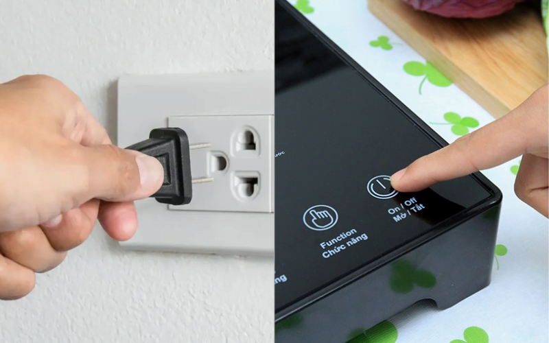 Sau khi nấu xong, nhấn lại nút on/off để ngừng bếp. Sau đó chờ một lúc rồi rút phích cắm điện để đảm bảo an toàn.